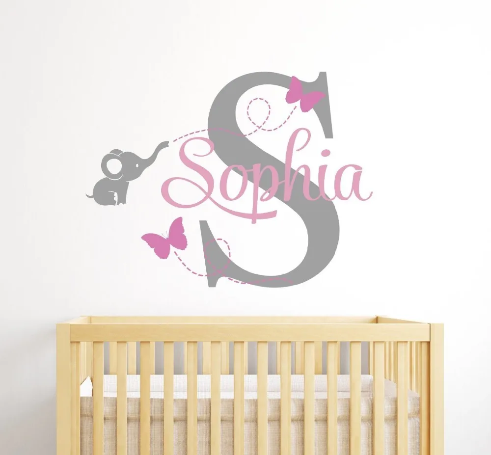 Съемный пользовательское имя слон Butteryfly настенные наклейки для детей Детская комната художественная роспись виниловая настенная наклейка для девочек Декор для комнаты Y-73
