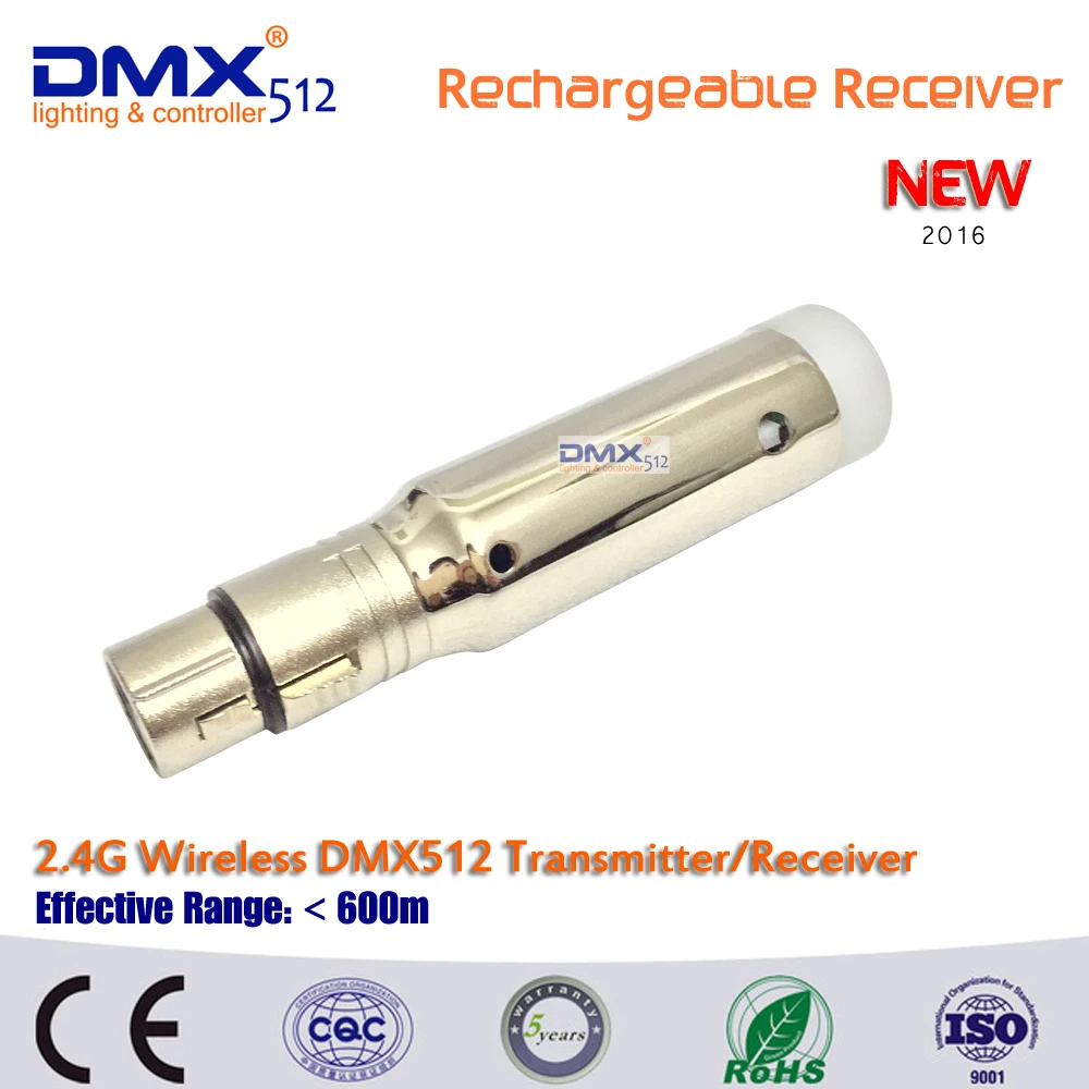 Новейший дизайн беспроводного приемника DMX512 имеет встроенную перезаряжаемую батарею, и батарея является возобновляемой.