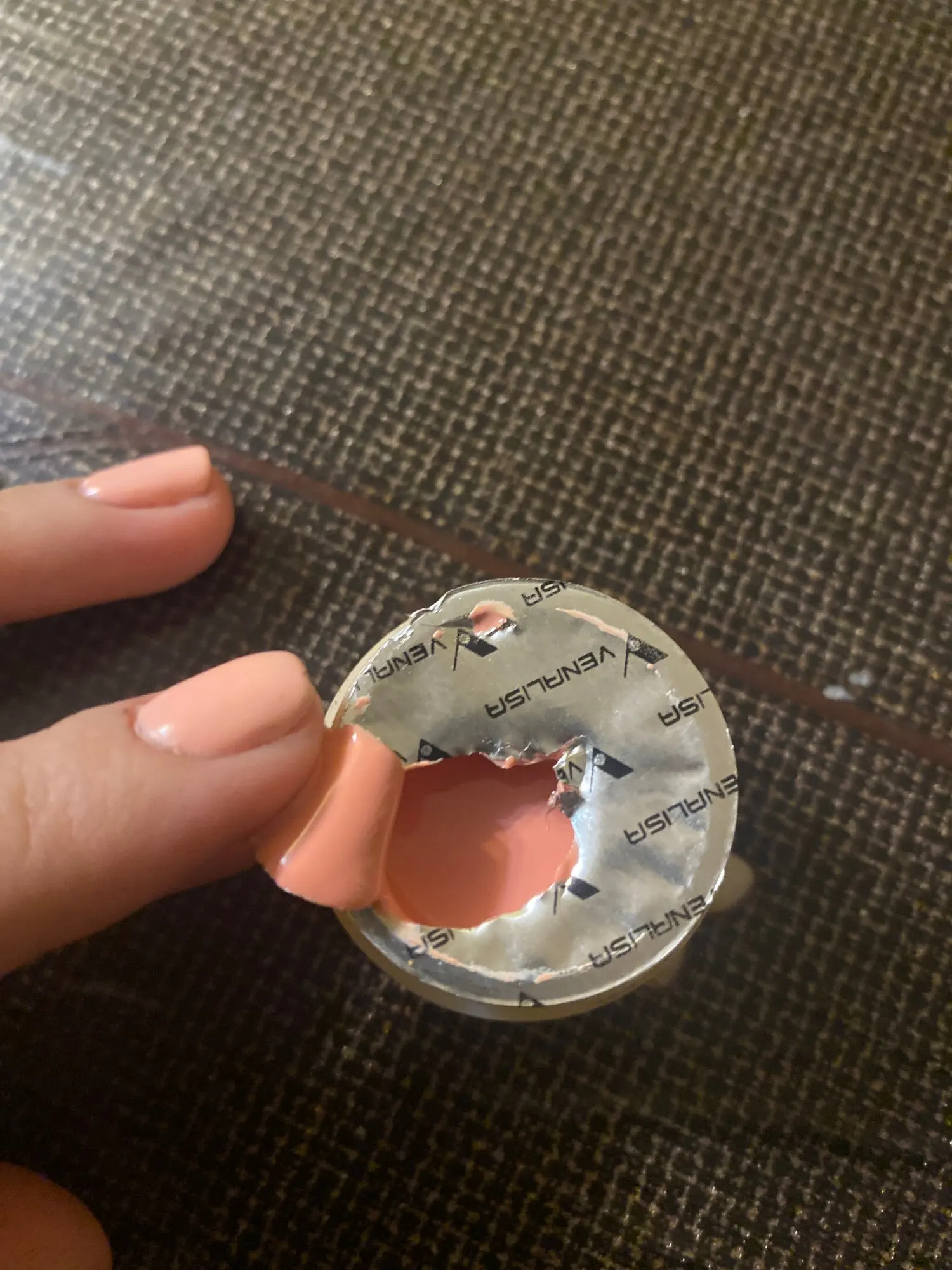 Густой по консистенции и плотный цвет. Баночка почти полная.