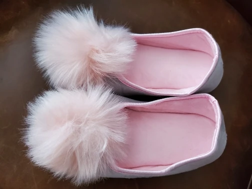 Тапочки классные, прям как на фото, толстая мягкая стелька, помпон стоило только взмахнуть и он пушистый, набитый и очень красивый! Тапки пришли на 3 недели раньше указанной даты на сайте.! Рекомендую к покупке!
