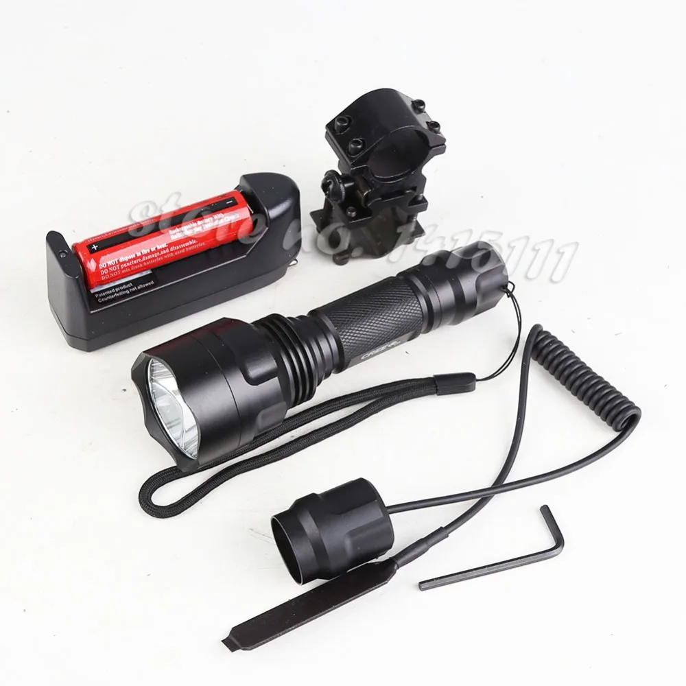 Высокое качество 2000лм фонарь C8 XML Q5 светодиодный светильник для вспышки Linterna фонарь светильник для охоты флэш-светильник + 18650 + зарядное устройство + крепление для пистолета