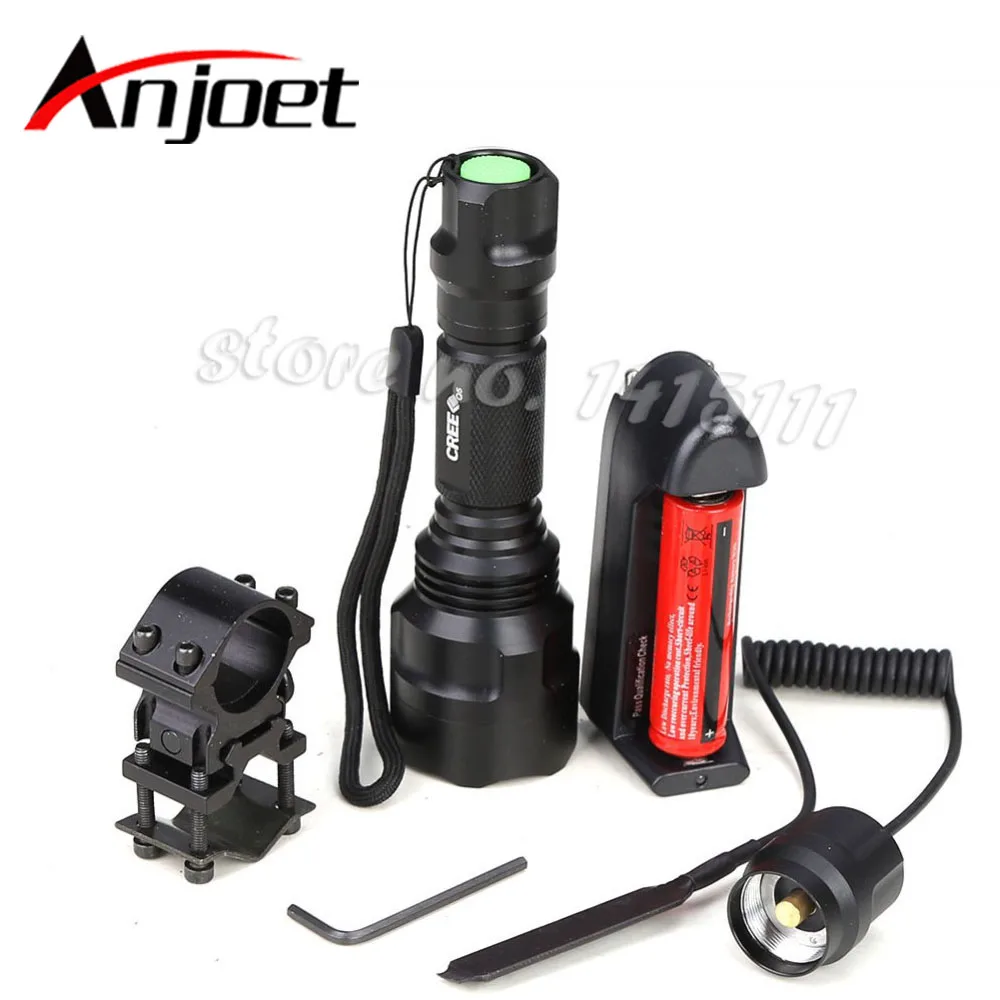 Anjoet высококачественный 18650 лм фонарь C8 XML Q5 светодиодный фонарик для охоты вспышка + зарядное устройство для аккумулятора крепление для пистолета