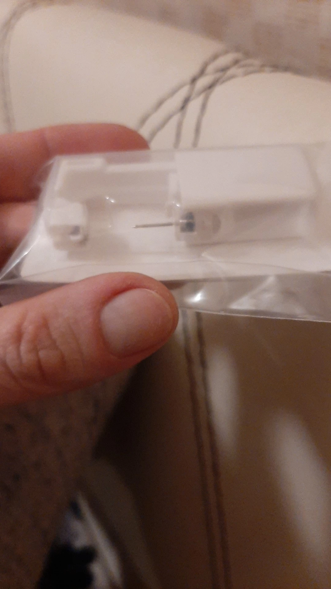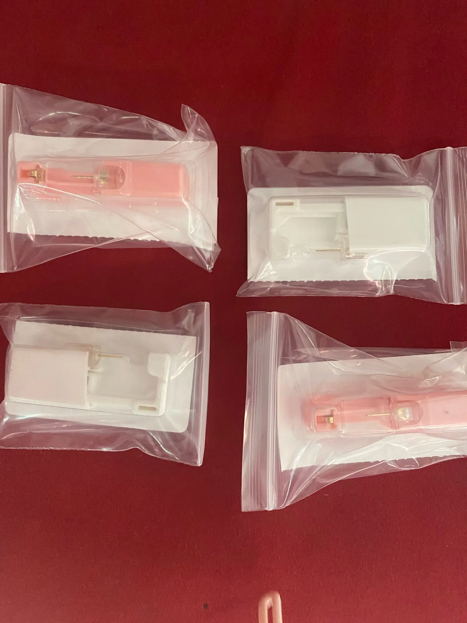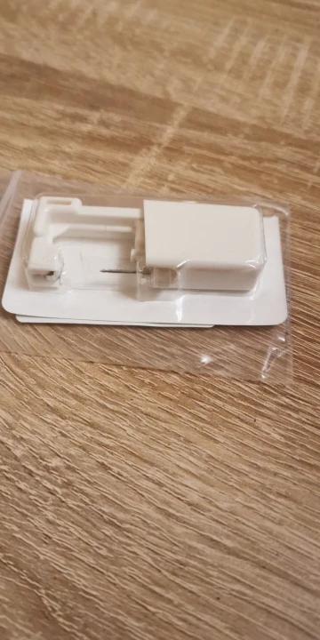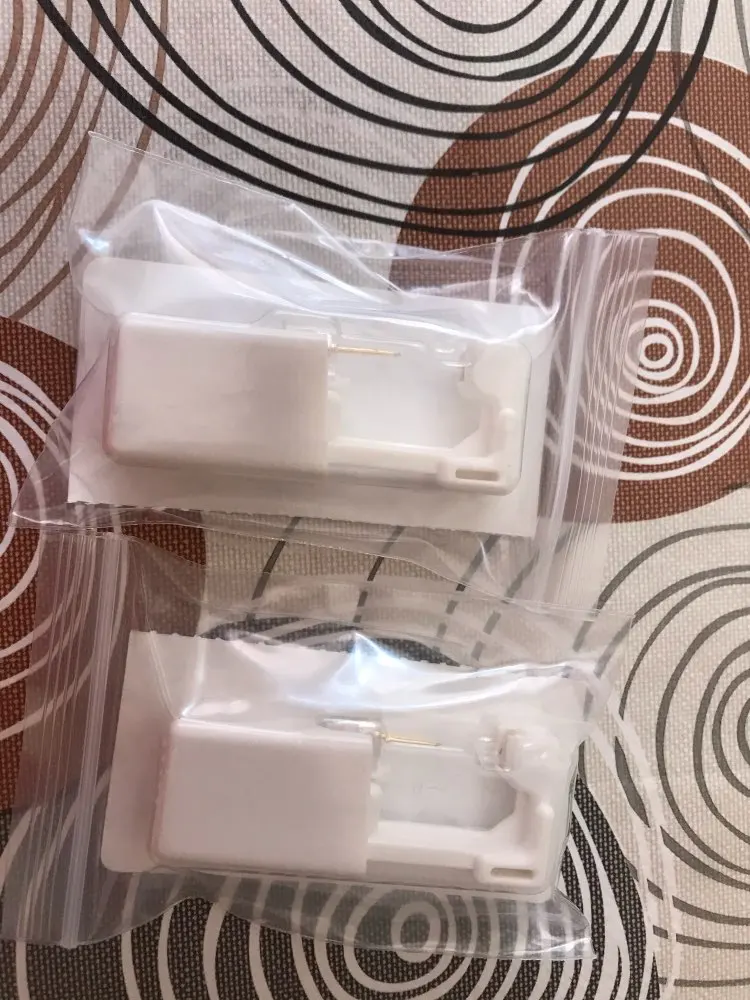 Они приходят как на фото. Они стерилизованы. Однако я нахожу это очень неудобным, когда применяю их... Я думал, что, как только вы сжимаете его, он будет стрелять, и отверстие будет сделано, а не, что вы должны просверлить его, заставляя себя.