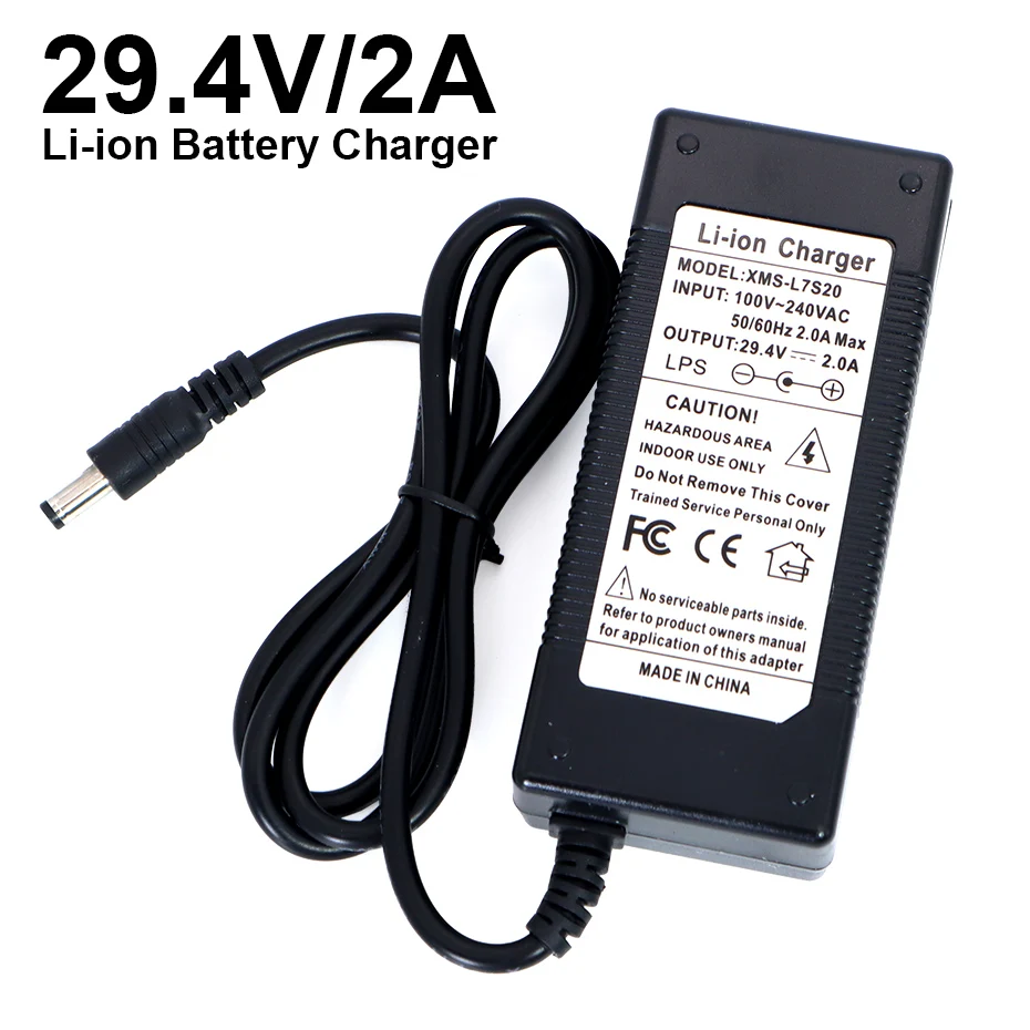 Зарядное устройство для литиевых батарей, 29,2 в, 2 А, 7 серии, 18650, 29,2 в, зарядное устройство с постоянным током, 2 А, 5,5*2,1 мм, с европейской вилкой