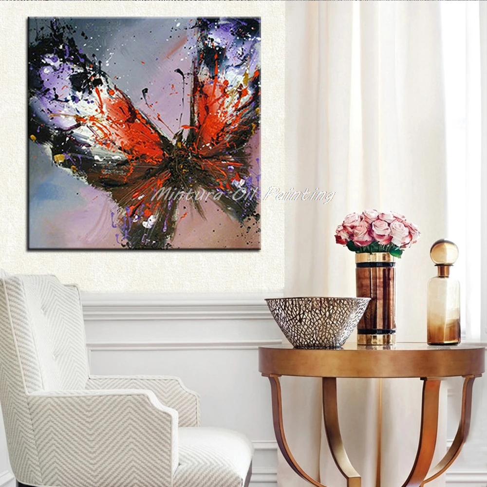 100% ручная работа, современная абстрактная бабочка, картина маслом на холсте, ручная роспись с животным рисунком, настенная живопись для гостиной, домашний декор