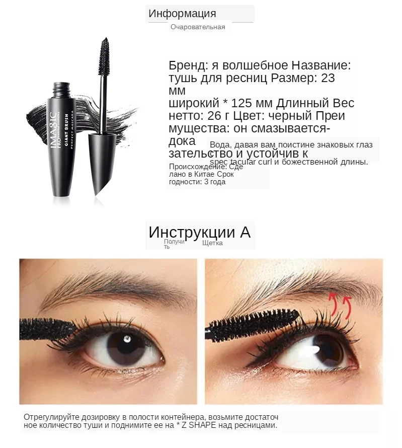 Новая тушь для ресниц IMAGIC, водостойкая, черная, концентрированная, для наращивания ресниц, быстросохнущая