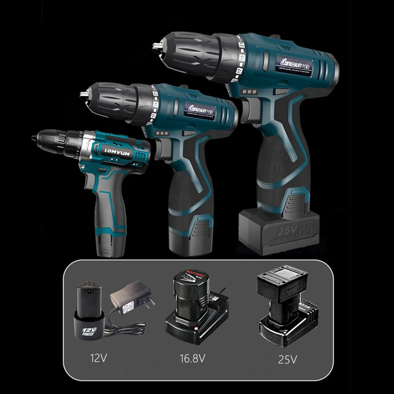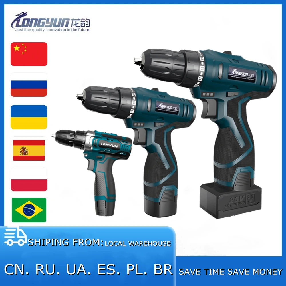Аккумуляторная электрическая дрель Longyun, электрическая отвертка с литиевым аккумулятором 12 В 16,8 В 25 В динамометрическая отвертка Шурик Шуроповерт бытовая дрель