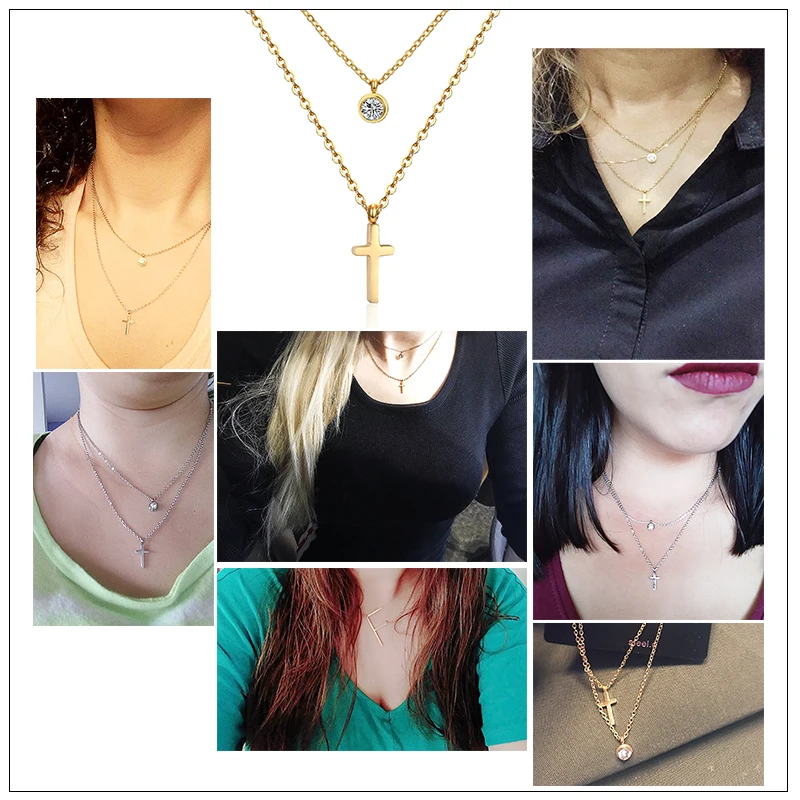 Комплект из колье и подвески в виде креста, из нержавеющей стали