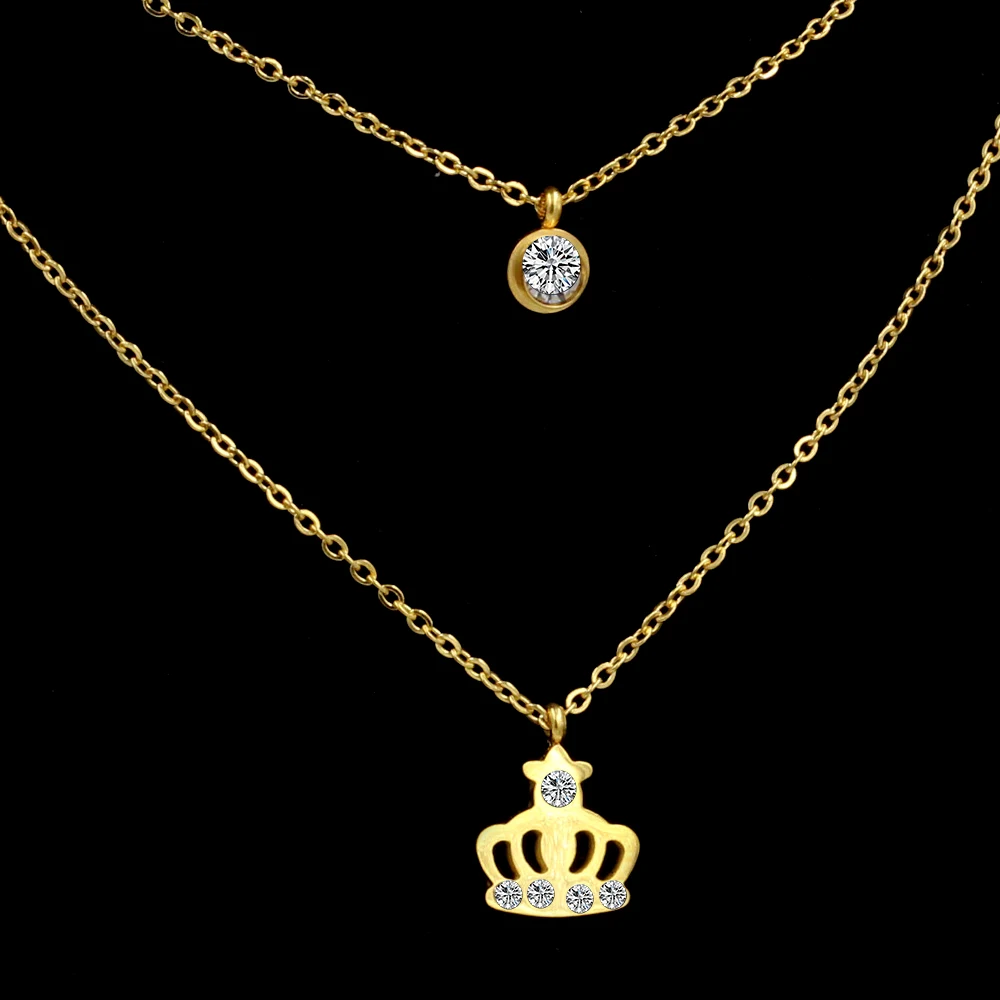 Цепь-чокер LUXUKISSKIDS из нержавеющей стали 316L с кулоном в виде короны из циркония, ожерелье для женщинмужчин, ожерелья золотогостального цвета, оптовая продажа
