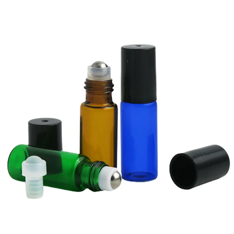 Пустые мини-стеклянные рулоны на бутылке 30x5 мл для эфирных масел, многоразовые флаконы для духов, контейнеры для дезодорантов с черной крышкой