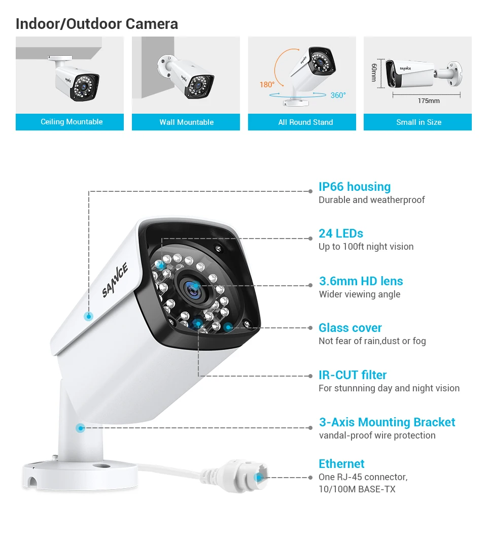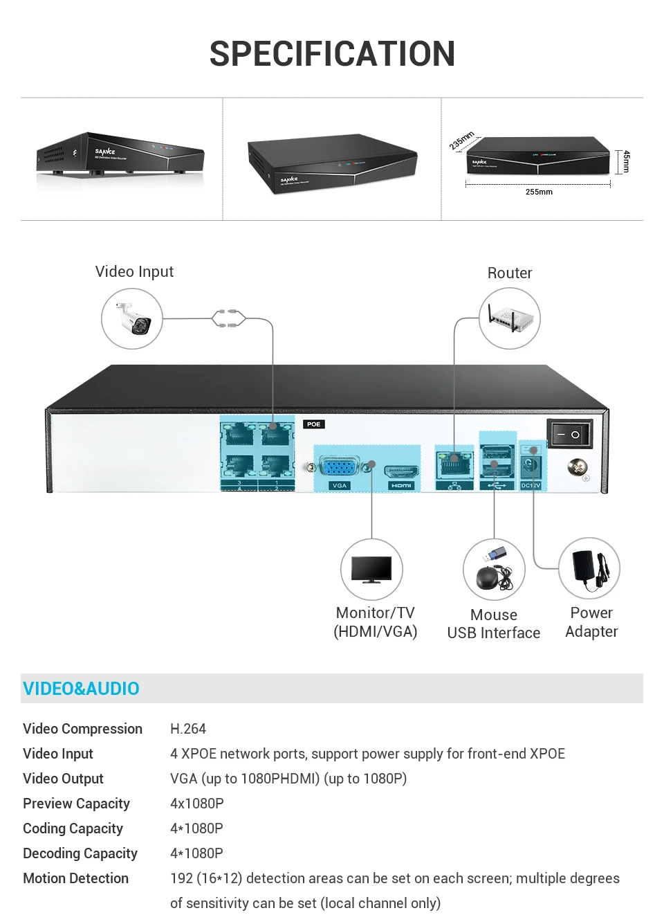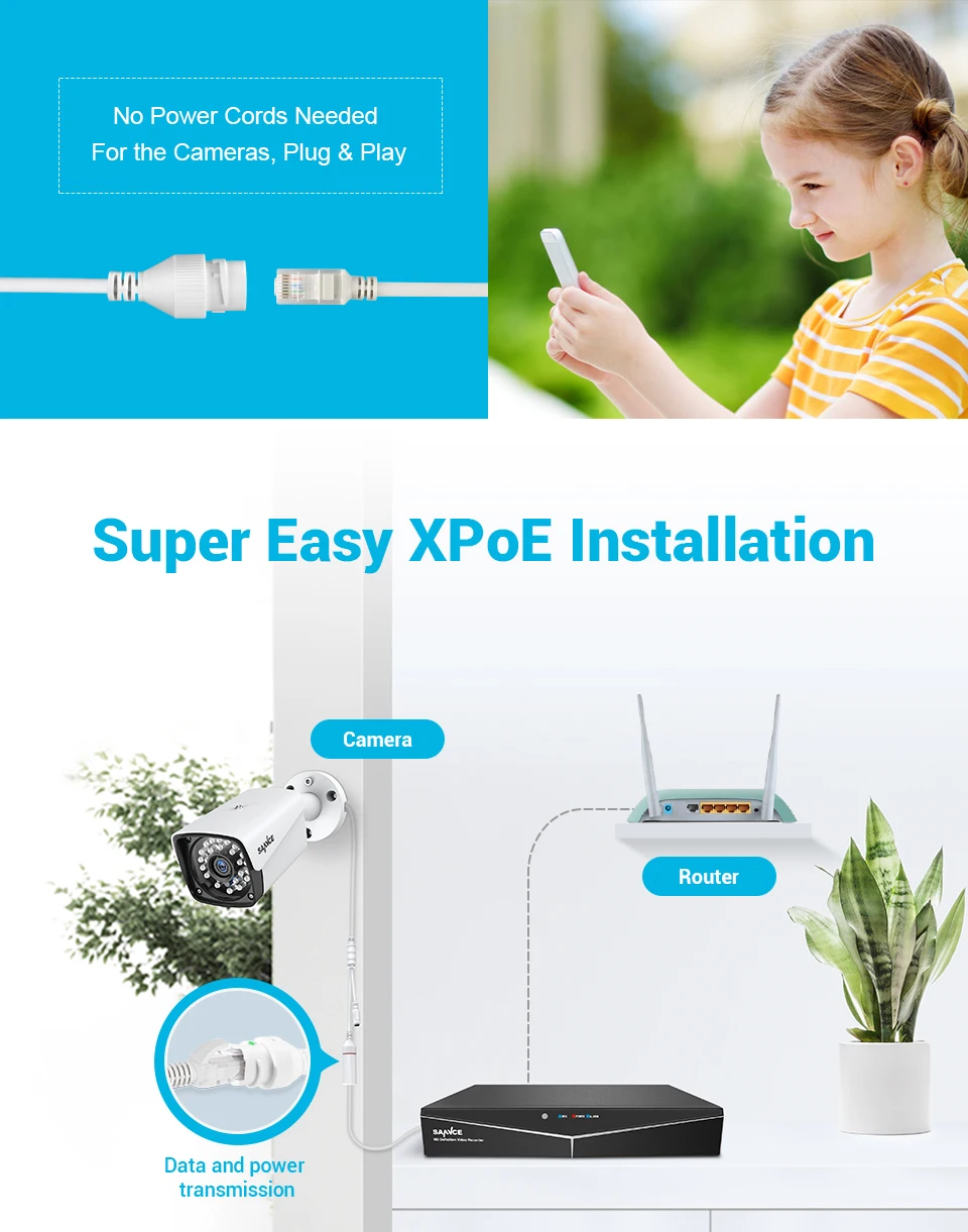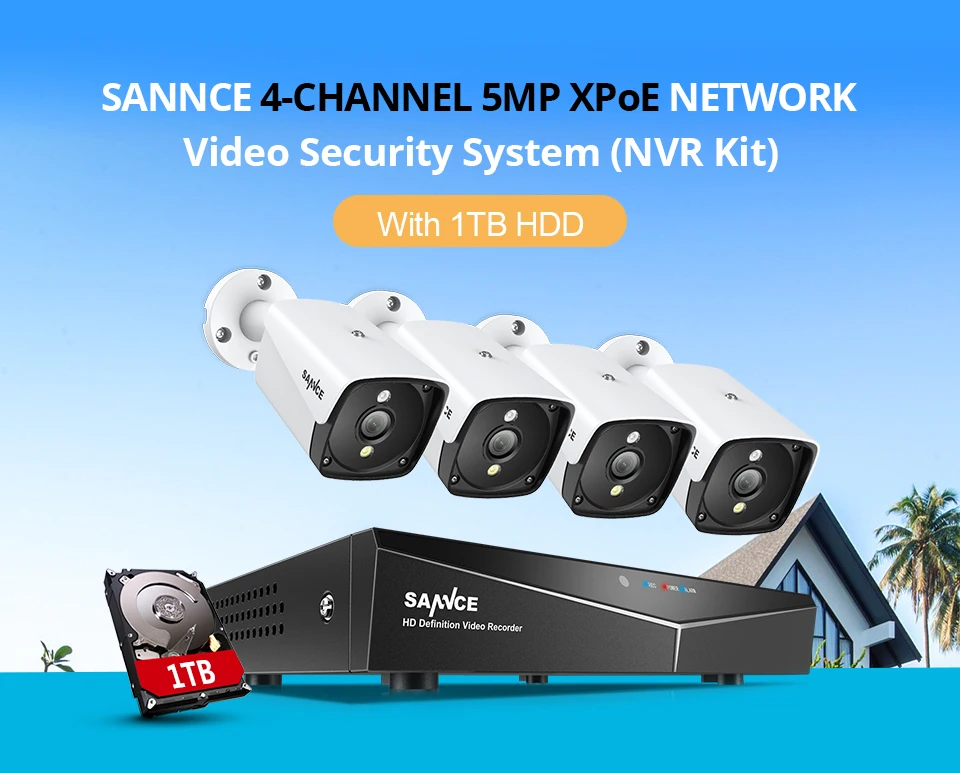 Система видеонаблюдения SANNCE, 4 канала, HD 1080P XPOE, 5 Мп, 4 IP-камеры