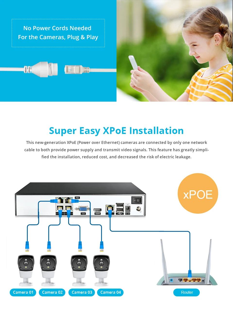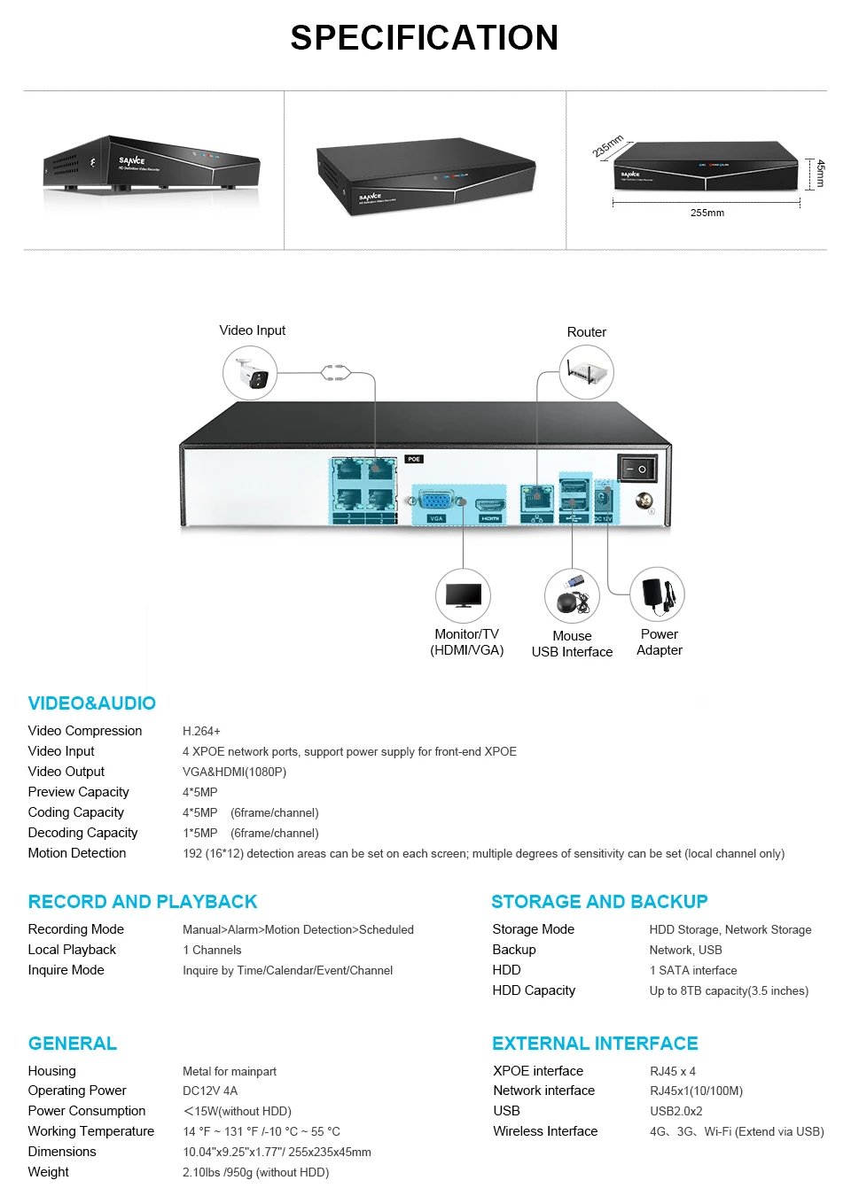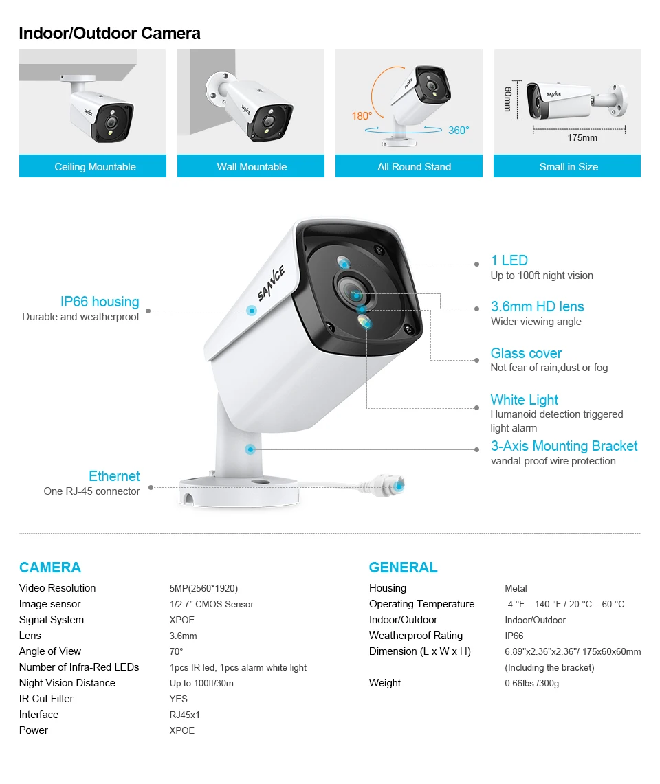 Система видеонаблюдения SANNCE, 4 канала, HD 1080P XPOE, 5 Мп, 4 IP-камеры