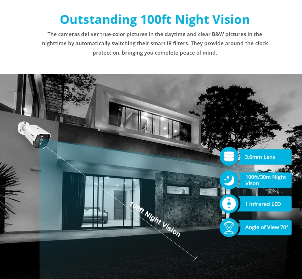 Отличная система наблюдения с хорошим интерфейсом, удобной и многофункциональной настройкой. Качество изображения и днем и ночью отличное. Единственный недостаток - светодиоды видны в темное время. Есть камеры со светодиодами, работающими на более высокой частоте, их не видно. А эти светятся. Рекомендую.