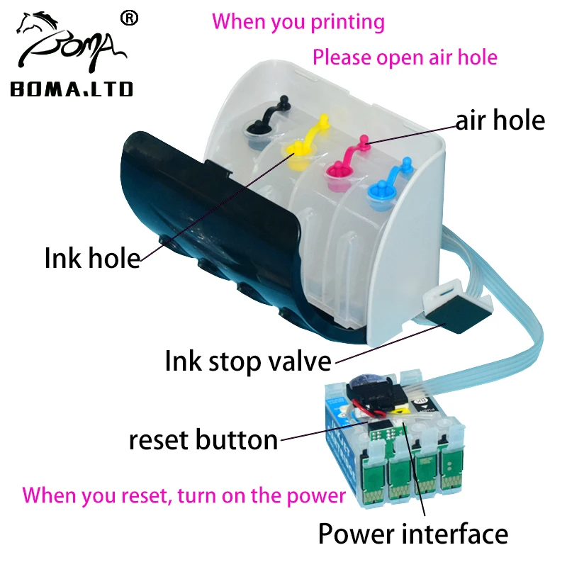 Бард Название: BOMA.LTD Название: Система непрерывной подачи чернил Тип чернил: сублимационные чернила, пигментные чернила, красящие чернила Картридж модели: 220XL 220 T2201-T2204 Принтеры: подходят для использования Для печатающей головки Epson WF-2630 WF-2530 XP424 XP-420 XP-320 принтер Цвет: BK,Y,M,C (R3G1) Минимальный заказ: 1 комплект Время выполнения заказа: 1-3 рабочих дня после оплаты Сертификат: ISO9001 и 14001 / SGS / MSDS / DGM Гарантия: в случае обнаружения дефекта замена 1:1