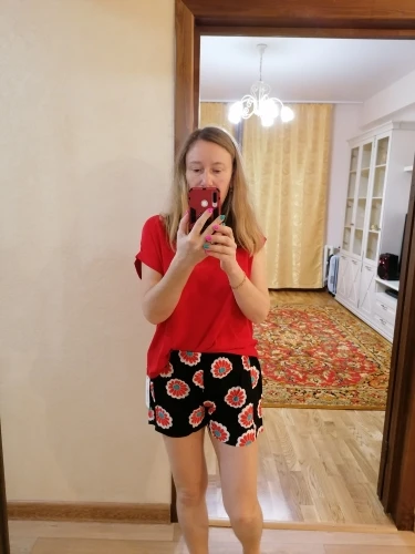 Отличный топик!! Очень красивый цвет, крой очень удобный. В меру свободный, нигде не давит. На объем груди 94 см, объем талии 73 см и объем бедер 93 см (44-46 российский размер) размер отлично подошёл! Качество пошива отличное. Ткань 100% шёлк, креп. Я очень довольна и рекомендую товар и этот замечательный магазин! Все супер, спасибо!
