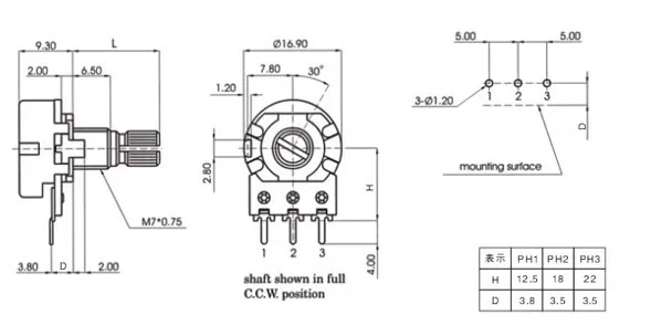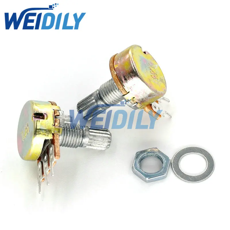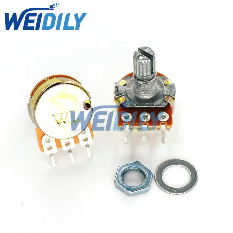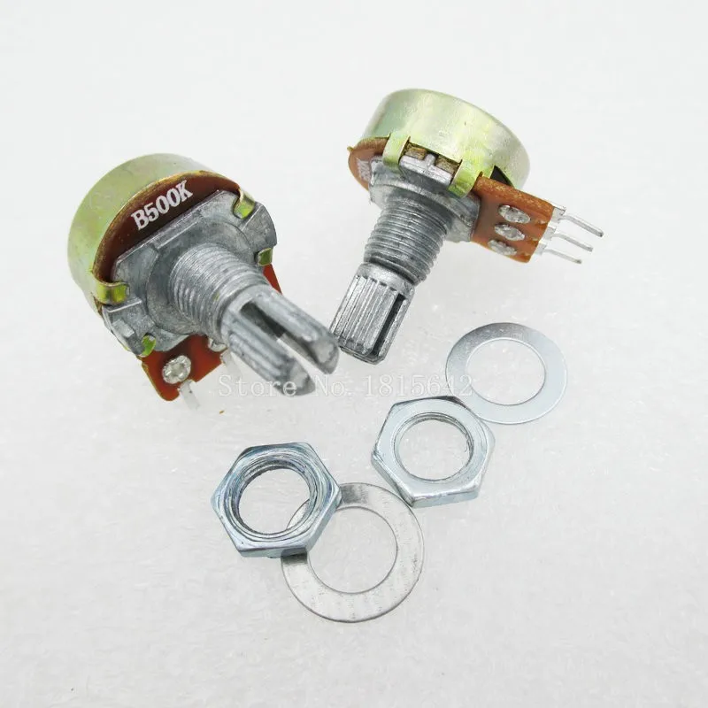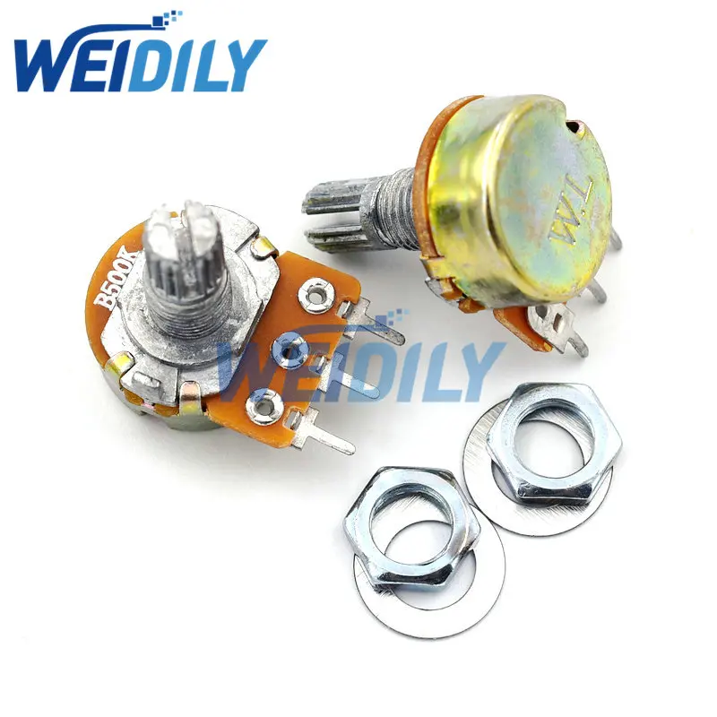 Линейный потенциометр WH148 B500K, вал 15 мм с гайками и шайбами, лидер продаж, 3 контакта, 2 шт.