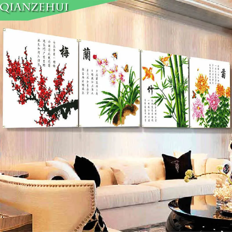 QIANZEHUI, рукоделие, слива, Орхидея, бамбук. Алмазная вышивка с хризантемами, маленькая вышивка крестом, настенный Декор для дома