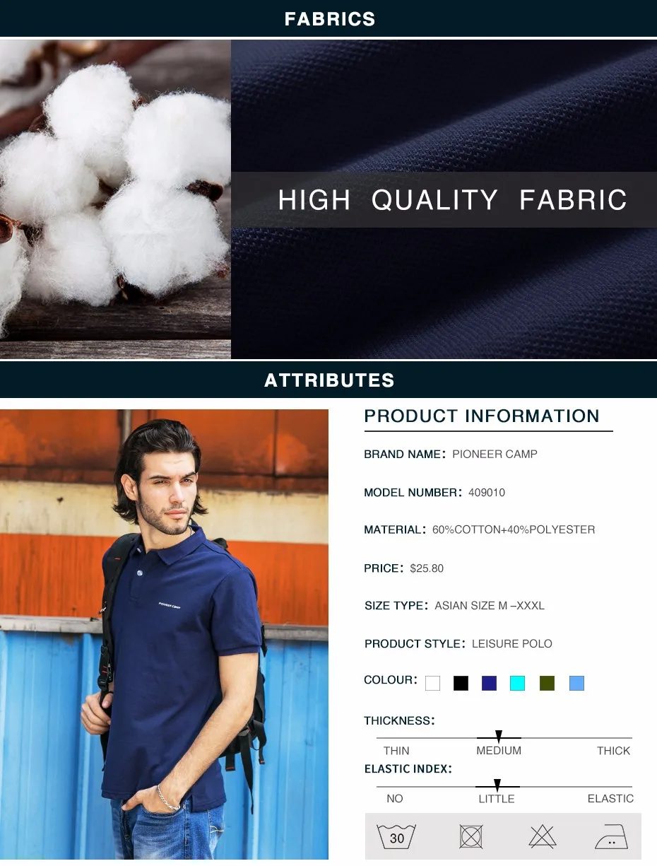 Рубашка-поло Pioneer Camp Мужская, Классическая дышащая Повседневная рубашка-поло с коротким рукавом, брендовая одежда, 409010