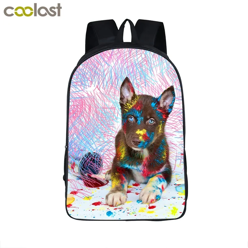 Рюкзак с принтом волкаХаски для мужчин и женщин, повседневные школь...