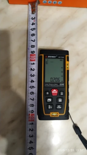 Отличная лента. Не тестируется, если он достигает 60 метров. Лучшая точность это измерение верхнего конца (как на картинке) с погрешностью 03 мм. Потребляет 2 батарейки AAA зубочистки. Прибыл менее чем за месяц в прекрасном горизонте. Не идеально подходит для очень четких мест.