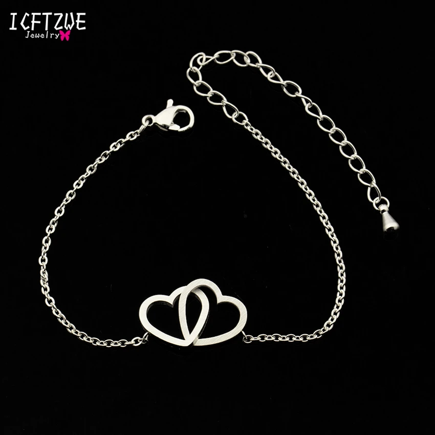ICFTZWE 10 шт. браслет Femme Acier Нержавеющая Сталь Двойное сердце Lariat золотой браслет для Для женщин Brazaletes Mujer icon star icon star icon star icon star icon star