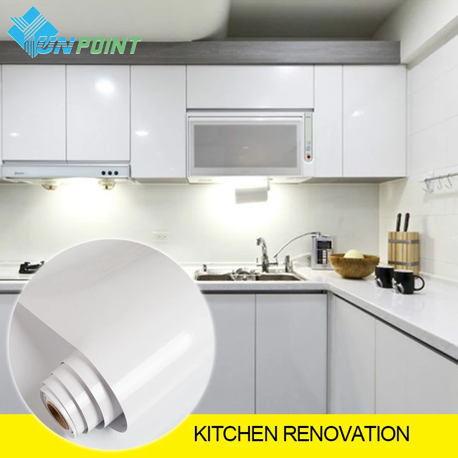Наклейки для обновления кухонных шкафов, глянцевая Белая настенная бумага, настольный шкаф, плита, самоклеящаяся мебель, водонепроницаемая настенная бумага