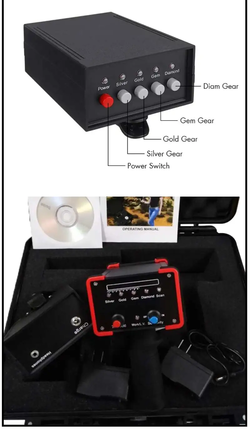 -Возможность настройки устройства для обнаружения следующих элементов: золото, серебро, драгоценный камень (рубин-сапфир-изумруд), алмаз и т. Д.