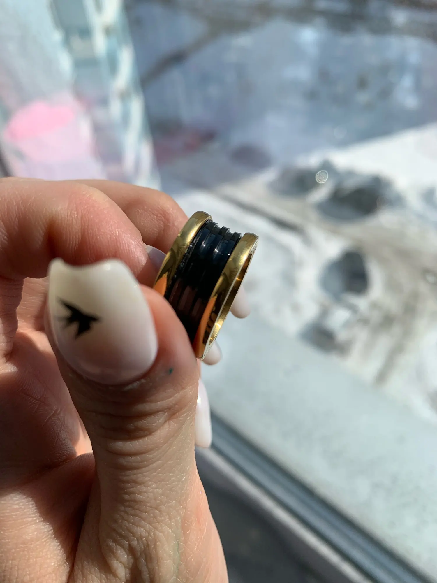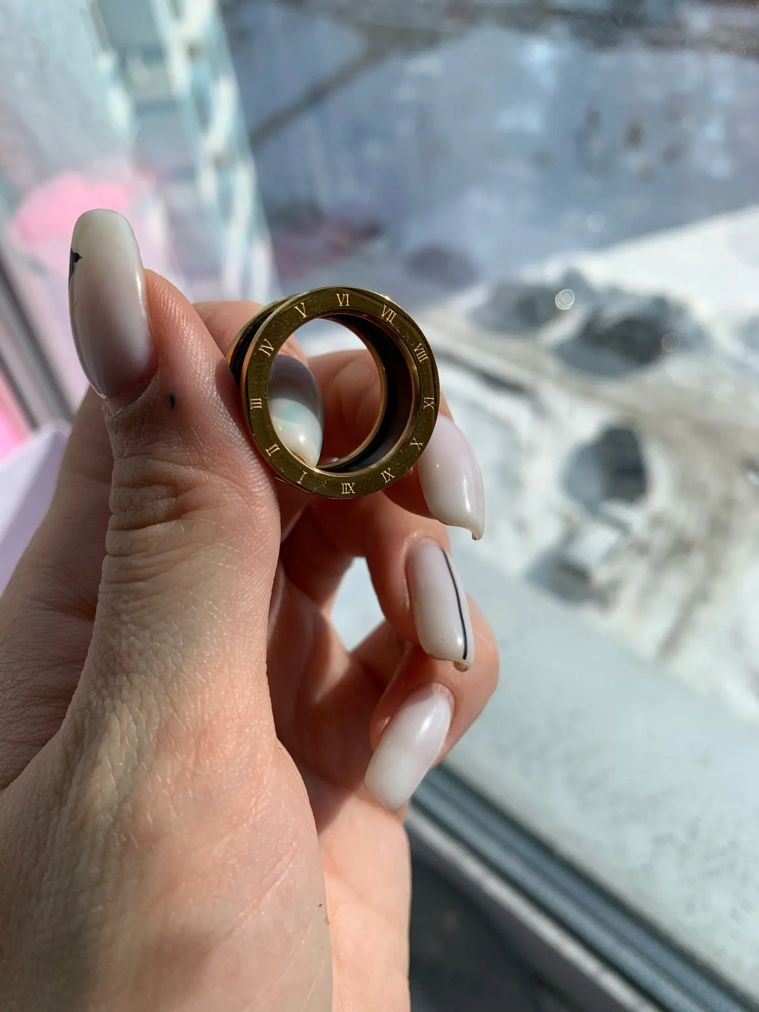 Девочки, это колечко просто Вау. Выглядит очень дорого, добротно и хорошо сделанным. На меня все обращают внимание, как-будто оно от настоящего бренда булгари. Очень советую. Моё самое лучшее кольцо тут с али. Берите свой размер!