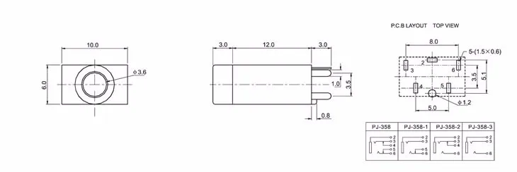 10pcs Vertical Phone Jack 3.5mm 5 Pin Stereo Audio Socket for 3 Poles Earphone Plug Through Hole DC30V 0.5A
