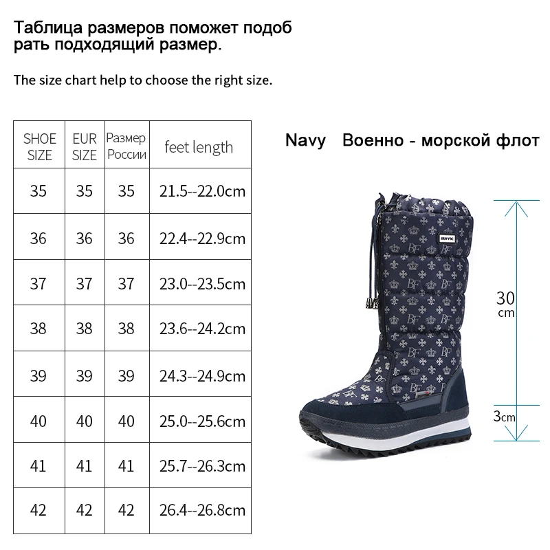 Отличные сапоги! На российский 36 размер (длина стопы 23,5см) заказала 37 размер, подошли идеально, можно ещё носочек теплый или дополнительную стельку положить (прислали вместе с сапогами). По меху: у сапог со снежинками в рисунке (модель 0767) мех искусственный, у сапог с листочками или коронами в рисунке (модель 0768) мех 50/50 шерсть с искусственным мехом. Выбрала смесь, думаю, что с шерстью будут теплее. Доставку заказала по России, в ХМАО за 10 дней курьером IML до квартиры. Я довольна! Товар и продавца рекомендую!