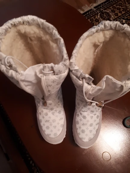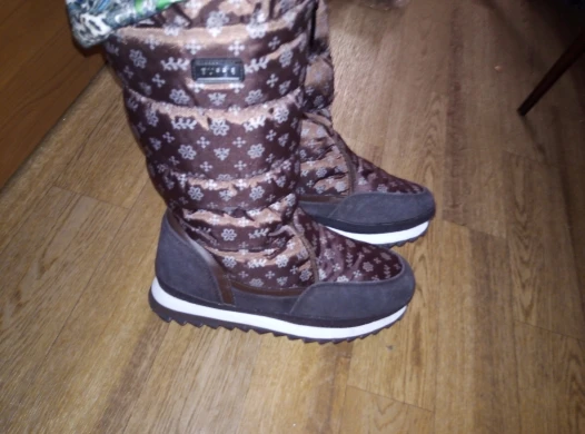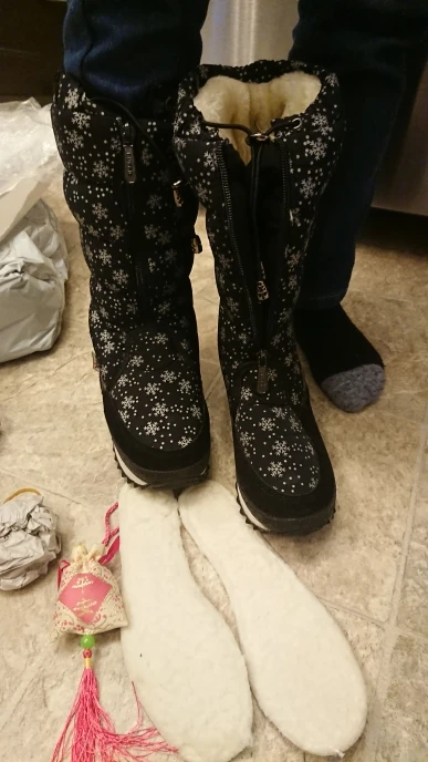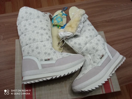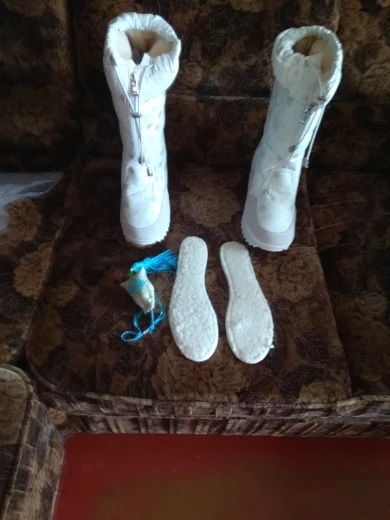 Сапожки на первый взгляд тёплые и качественные. Надеюсь, носиться будут долго и в них будет тепло. Посылку получила за неделю (Москва). Продавцу спасибо за подарочки - дополнительные стельки и аромо-мешочек.