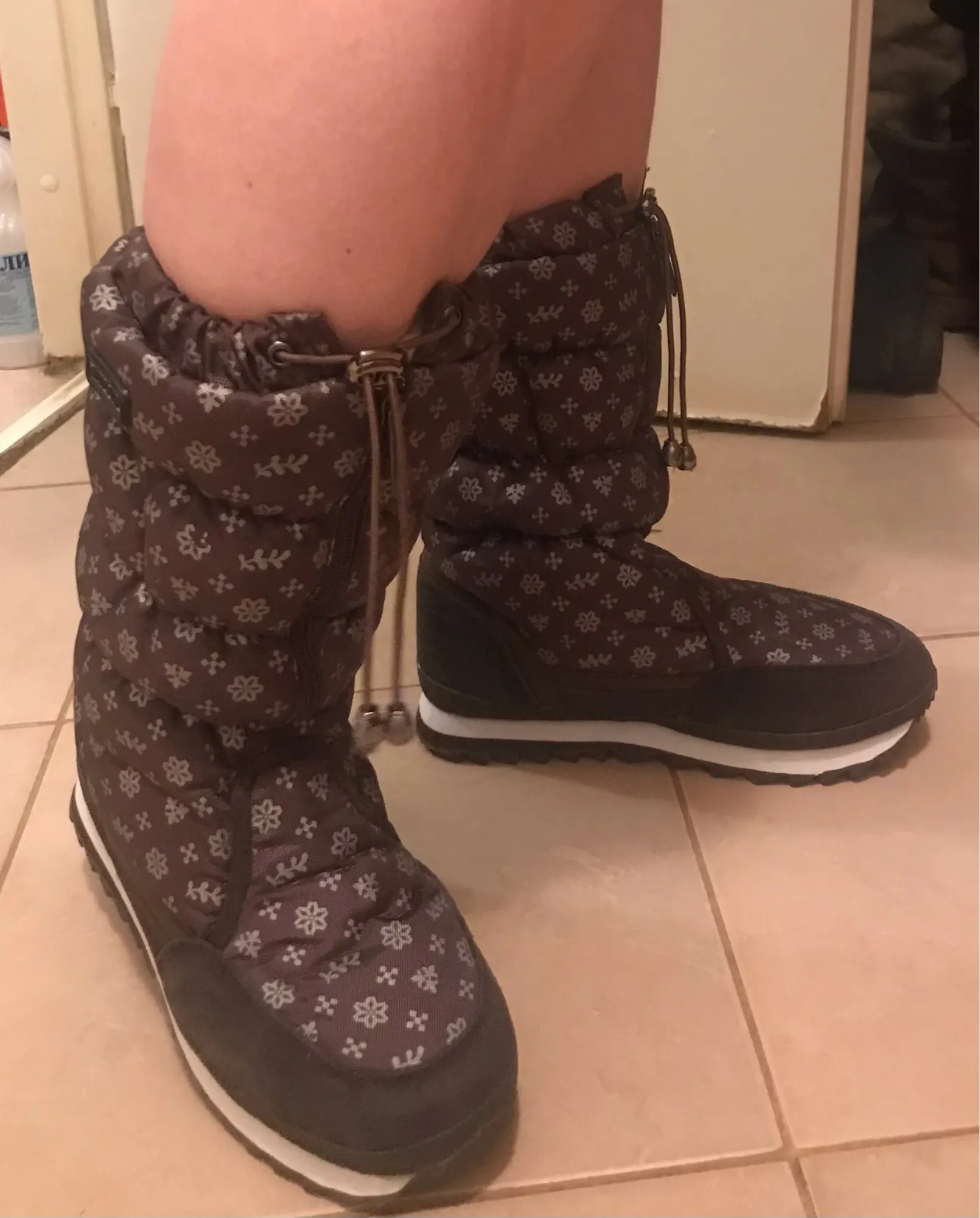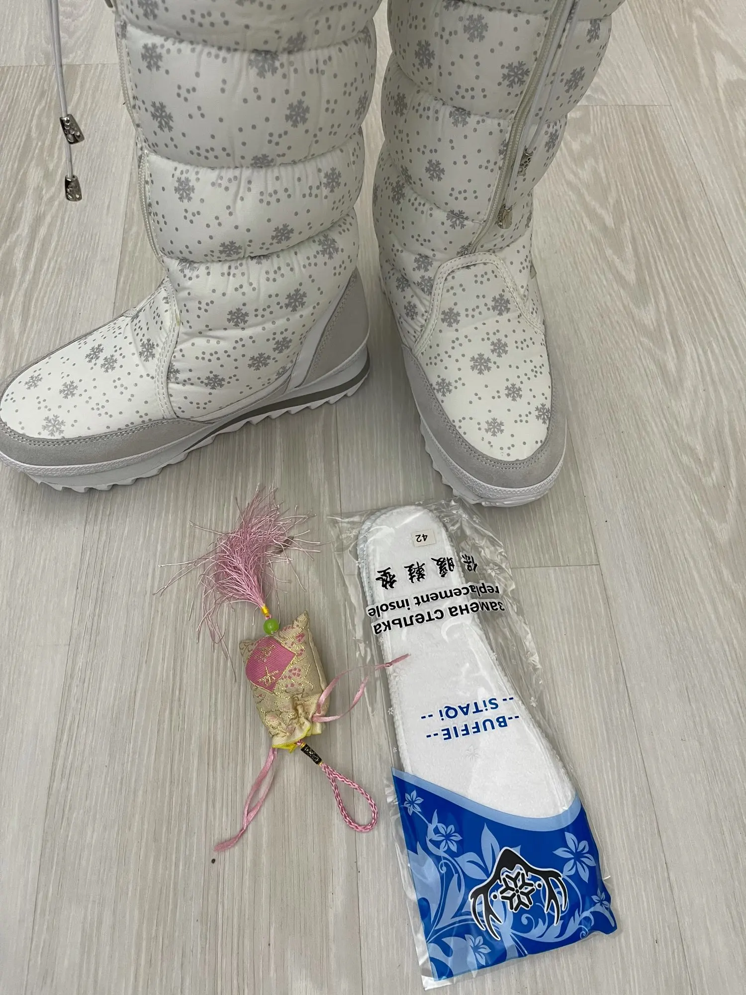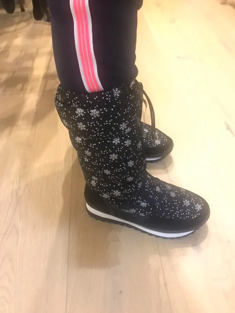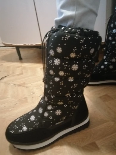 Качественные дутики, видно что тёплые и непромокаемые. На свой 39 размер взяла 41 - как рекомендовали в отзывах и на сайте продавца. Все подошло, есть небольшой запас для носка. В комплекте приложили стельки дополнительные и подарок. Спасибо)