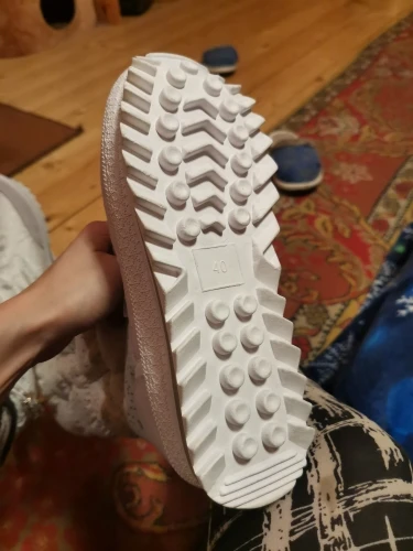 Обалденный протектор на подошве! Прямо зимняя резина!! На ступню 24,5 (наш 38 размер) начитавшись отзывов взяла 40. Надо было брать 39, и то он был бы ещё для ортопедической стельки и тёплого носка. Так что учтите, на 38 размер если просто как есть надеваете - можно брать 38. Если побольше - то 39.