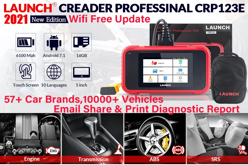 LAUNCH CRP123E OBD2 профессиональные диагностические инструменты, проверяйте двигатель ABS SRS система передачи подушки безопасности, тест батареи, авто вин один клик Wi-Fi, пожизненное бесплатное обновление, Android 7,0, полный OBD2 функции чтения