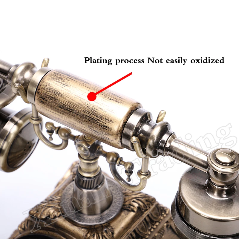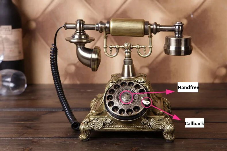 Особенности1. Без внешнего источника питания, без аккумулятора, напрямую с помощью телефонной линии2. Ретро Мелодии (сладкий звук колокольчика)3. Повторный набор4. Громкая связь5. Поверните циферблат6. Подходит для размещения: подходит для дома, офиса, роскоши, звездных отелей, галерей, ювелирных фирм для улучшения качества и качества