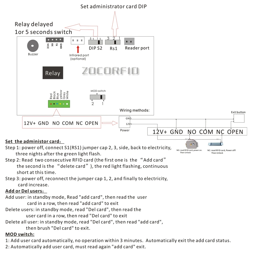 Рабочее напряжение DC 9 v ~ 18 vРазмеры установки 86 мм x 45 мм x 12 ммРабочий ток <100 мАЕмкость пользователя: 15000Большой объем 80 гЧтение типов карт: 13,56 МГц IC ISO14443A M ifare S 50Температура окружающей среды от-20 до 70Расстояние чтения карты: 1-15 смОтносительная влажность 20%, 80%