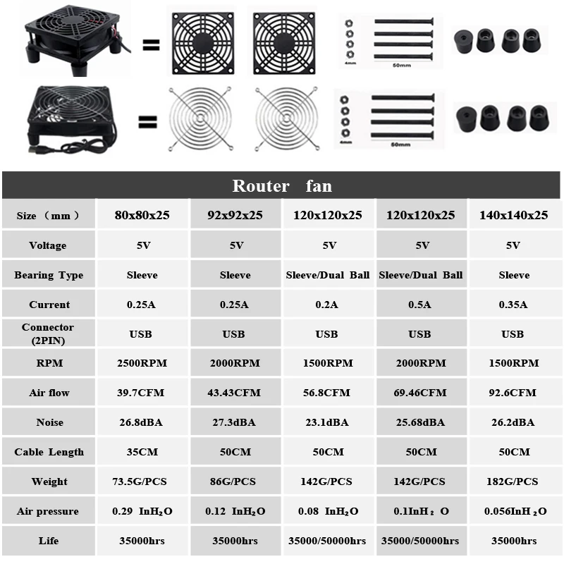 Охлаждающий вентилятор Gdstime для ТВ-приставки, 5 В, 80 мм, 92 мм, 120 мм, 140 мм, кулер для ПК сделай сам с винтами, защитная сетка, бесшумный Настольный вентилятор