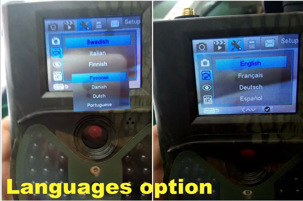 1. Срабатывает движение. 2. Автоматическое отличие изображений. Цветные изображения в дневное/черно-белое ночное изображение. 3. Храните фотографии/видео в tf-карте на 32 Гб. (Не входит в комплект). 4. Три режима: камера, видео, камера + видео. 5. Изображения/видео с высоким разрешением. 6. Печать даты, времени, температуры и фазы Луны на каждой фотографии. 7. Несколько фотографий 1/3/6/9. 8. Отправка изображения через 2G GSM MMS или GPRS; 9. Четыре полосы: 850/900/1800/1900 МГц. 10. Выбор 12 языков: Английский Французский Немецкий Итальянский Испанский шведский датский финский голландский португальский, русский и польский.