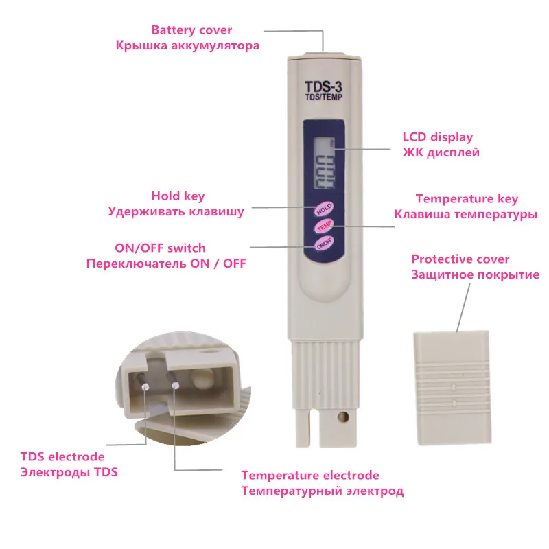 Измеритель TDS (aka ppm pen, тестер питательных веществ, tds stick)-это недорогой и удобный цифровой инструмент для мгновенной проверки общего качества воды. TDS = общие растворенные твердые вещества, которые являются любой солью, металлом или минералом в воде. С помощью кнопки TDS может сообщить вам общий уровень чистоты воды, который будет отображаться на экране в ppm (части на миллион). Чем ниже уровень TDS, тем чище вода, и 0 ppm является чистым H2O. TDS отлично подходит для проверки качества водопроводной воды или для изменения фильтра. (Измеритель не тестирует биологические загрязнители.) TDS-это отличный инструмент для питьевой воды, фильтрации и очистки воды, коллоидного серебра, гидропоники (проверьте свои питательные вещества), аквариумов, систем RO/DI, бассейнов и спа-салонов, коммерческое и промышленное применение и многое другое. TDS-это прочная модель, в которую входит защитный чехол для переноски. Это самый популярный в мире портативный измеритель TDS для профессионалов отрасли. Ts идеально подходит для коммерческого использования. В комплект входит чехол для переноски с зажимом для ремня. Функция удержания: экономит измерения для удобного чтения и записи. Высокоэффективный и точный благодаря усовершенствованной технологии микропроцессора Встроенный цифровой термометр, дисплей: большой и легко читаемый ЖК-экран. Цифровой измеритель воды AquaLutio TDS идеально подходит для тестирования таких приложений, как гидропоника и садоводство, бассейны и спа, аквариумы и рифы, ионизаторы воды, фильтр для воды. Питьевая вода и многое другое. TDS счетчик воды идеально подходит для тестирования приложений идеальная питьевая вода, фильтр для воды, угольные фильтры, Весенняя вода, жесткая вода, средняя водопроводная вода, фильтр для воды холодильника, фильтр для воды, фильтр brita, обратный осмос, обратного осмоса фильтр