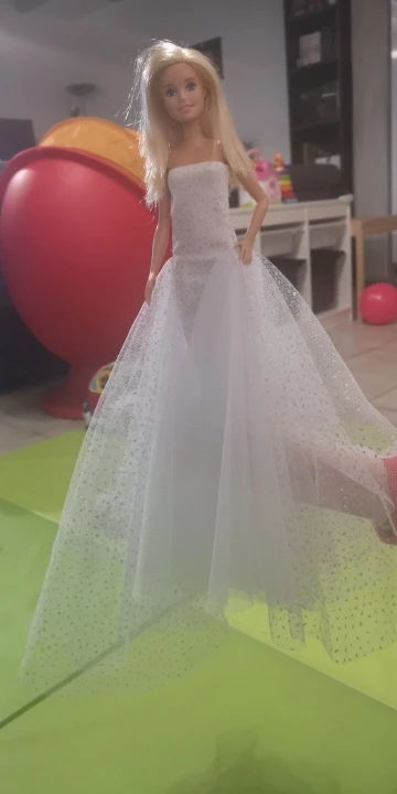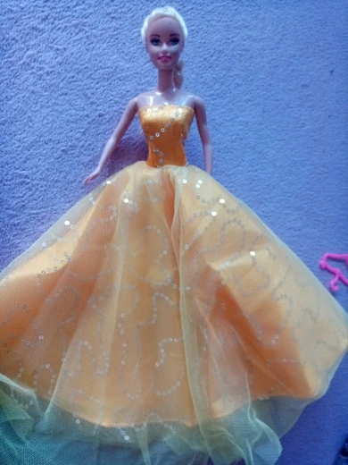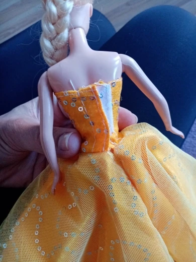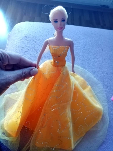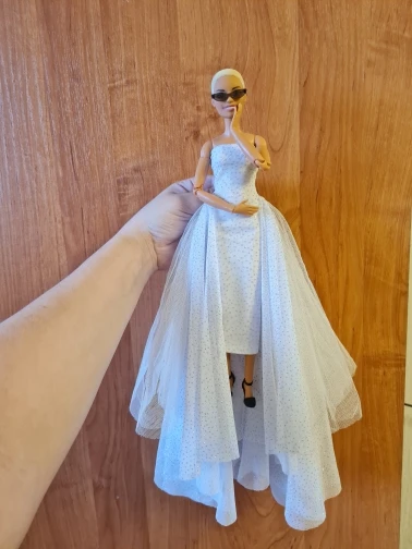 Платье симпатичное, не такое пышное,конечно,как на картинке, подходит только на классическую барби, на curvy не налезло. Продавец положил подарок : очки для барби