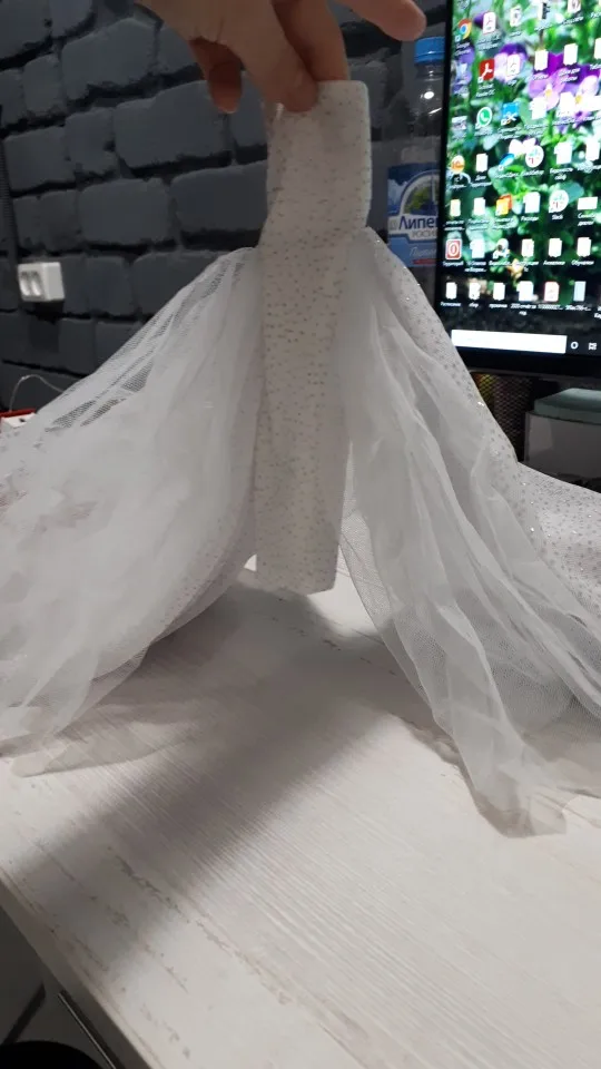 Как на фото, это очень красиво, но приносит очень сильный химический или пластичный запах, я оставил его на улице, и через несколько дней он больше не пахнет. Очень быстрая доставка и прибытие. Платье хорошо сделано и красиво.