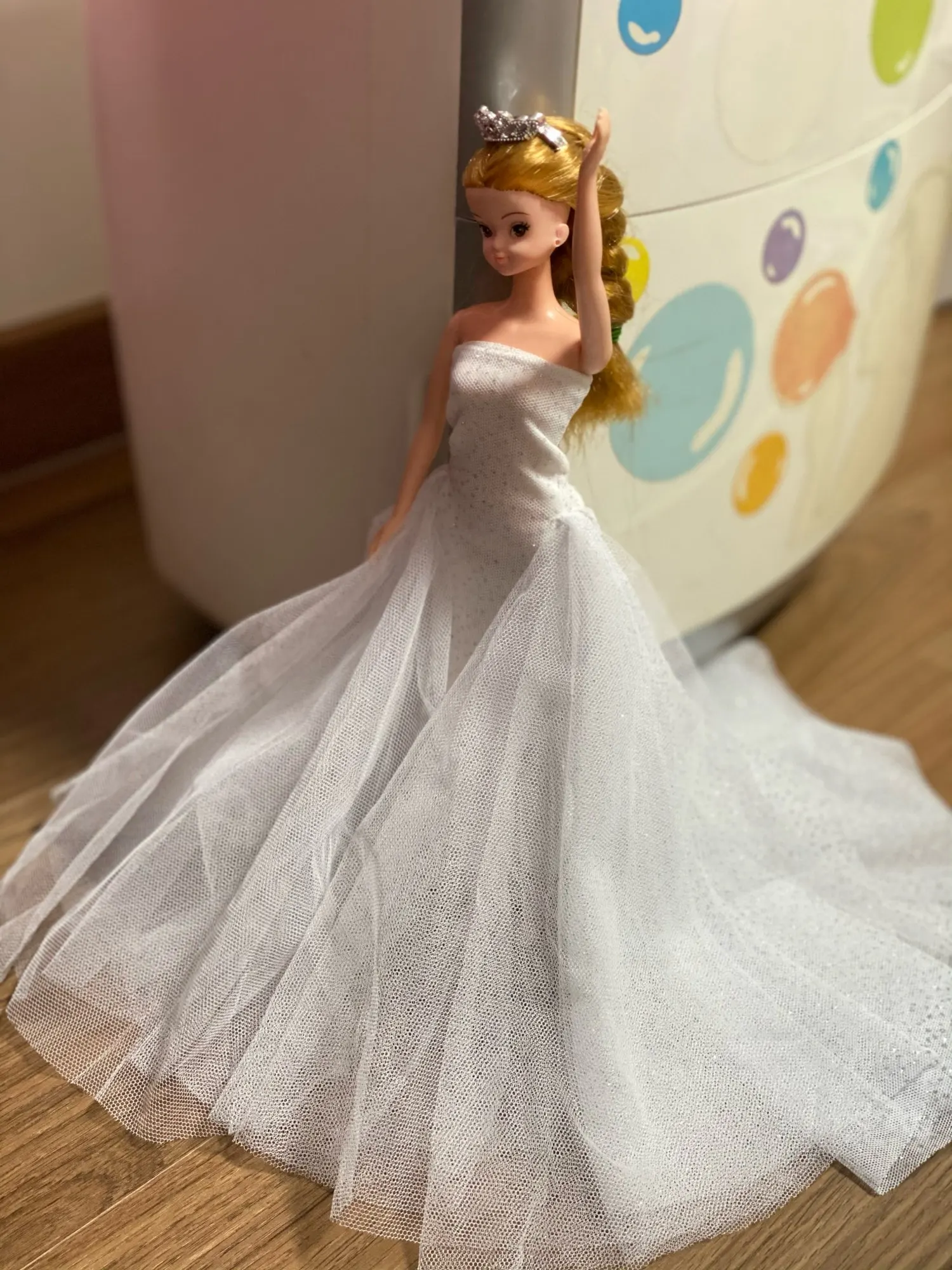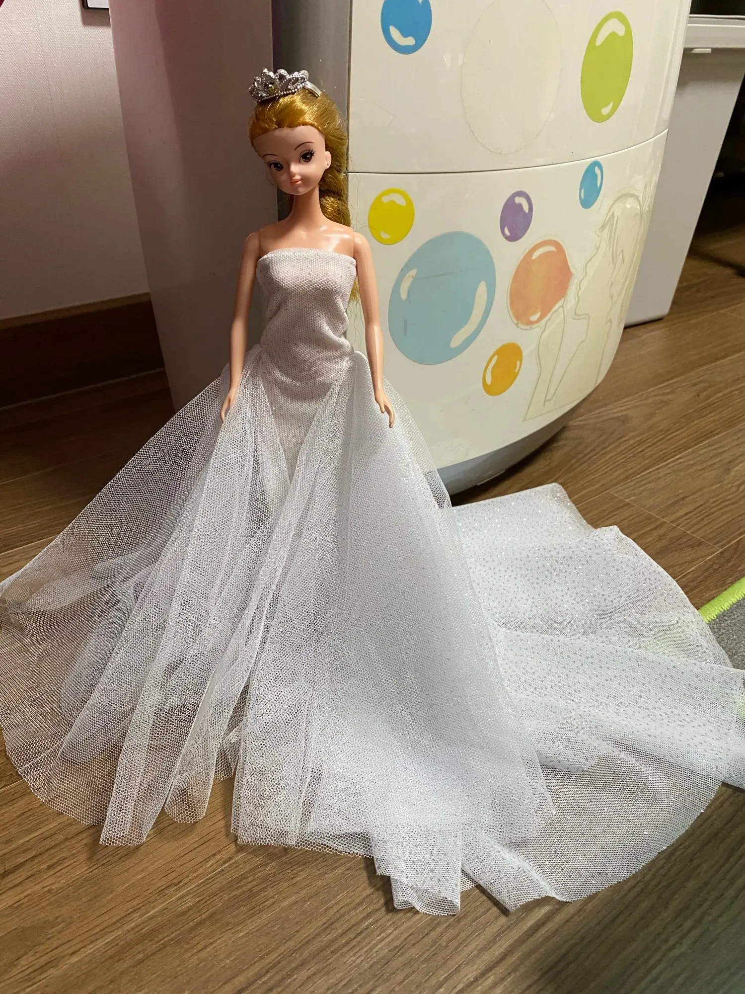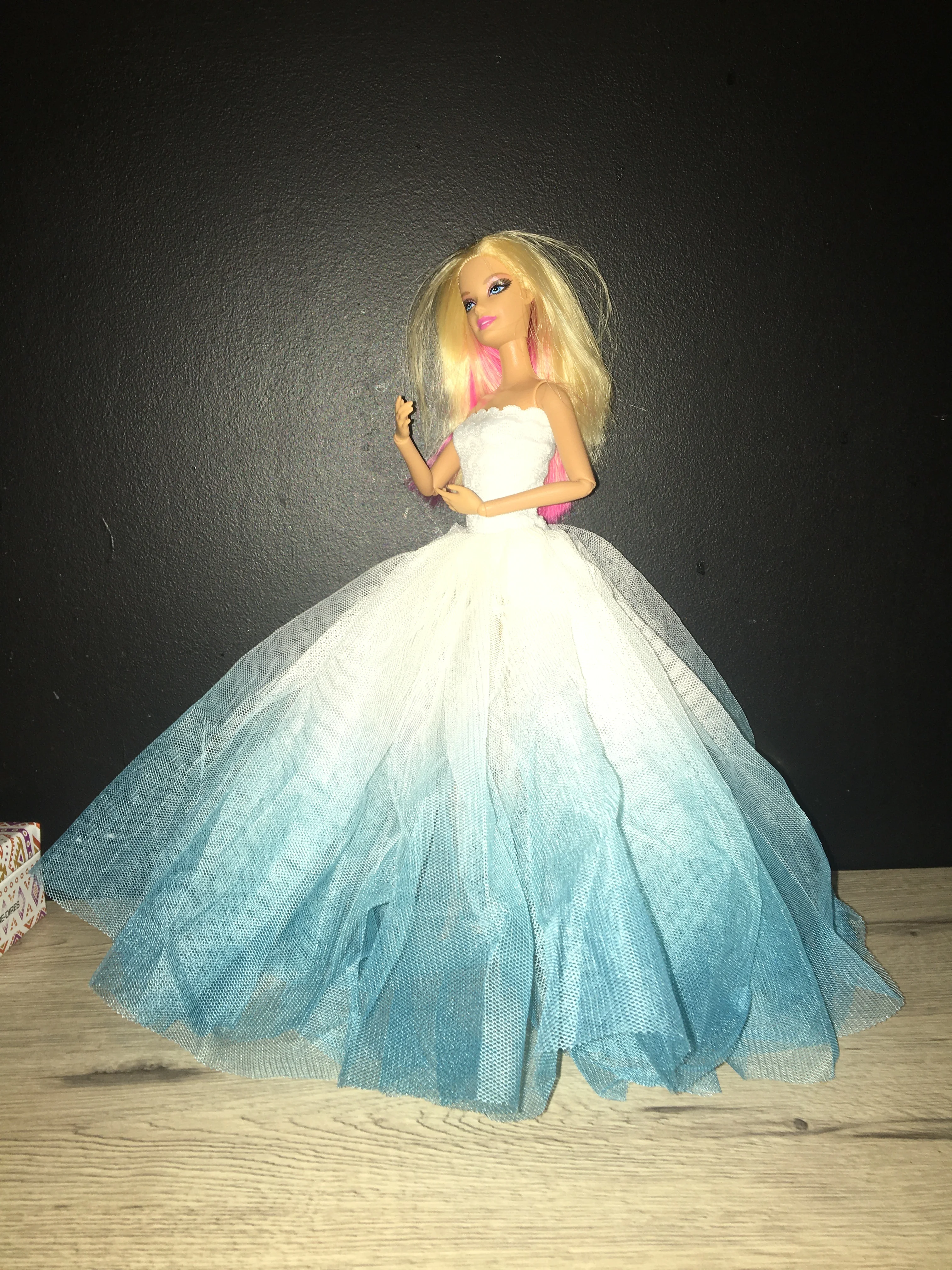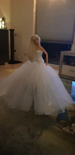 Прибыл в течение 2 недель! Это действительно красиво. Немного длинный, и вы можете видеть ноги куклы через него, я думаю, что ему нужна Нижняя юбка, чтобы сделать ее более полной и блокировать ноги, но мне это нравится! Он по-прежнему красивый и поставляется с маленьким подарком.
