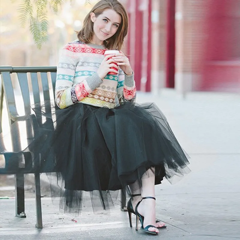 Женская Плиссированная Юбка-миди, фатиновая юбка, 5 слоев, 60 см, юбка-пачка для танца