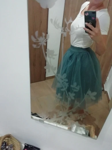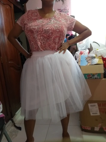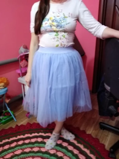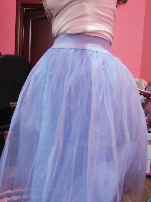 Очень красивая юбка, мне нравится цвет и длина. Фатиновая ткань немного жесткая, но юбка пышная. Он требует глажки, но выглядит празднично и будет хорошо подходит для любой вечеринки или фотосессии ..