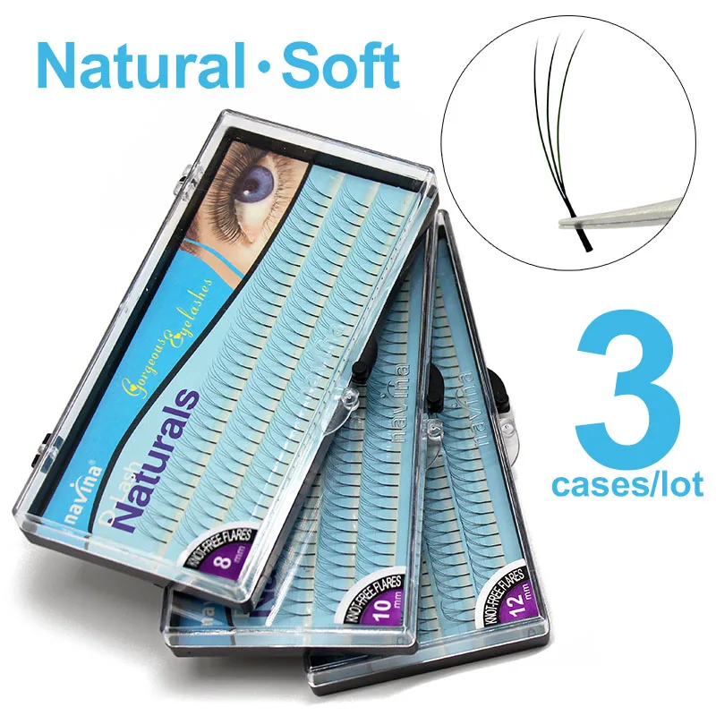 Navina 3 чехла/партия 0.10C натуральный 3D эффект Наращивание ресниц Индивидуальный кластер ресниц Макияж Длинные Черные Мягкие Накладные ресницы