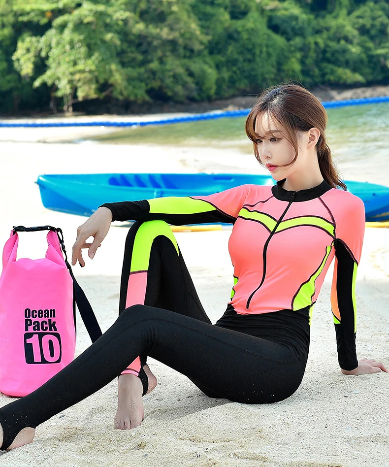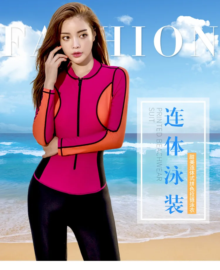 Купальник UPF 50 + слитный Женский, корейский купальник для дайвинга с длинным рукавом и молнией спереди, защита от УФ излучения, пляжный костюм для серфинга, большие размеры