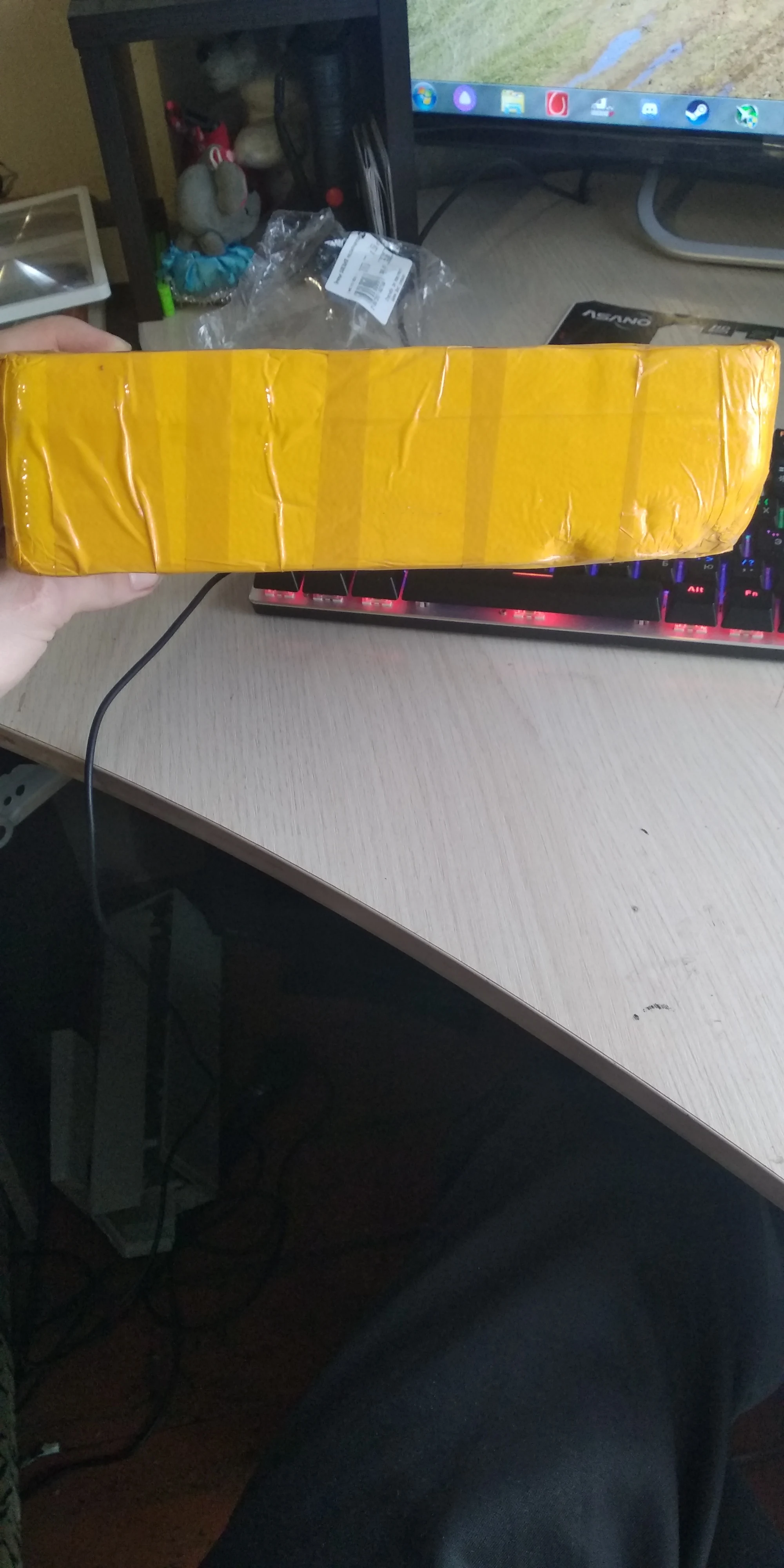 Запакован был очень хорошо,замотан пленкой с пупырышками,и наклейкам хрупкое,очень доволен все в целости и сохранности