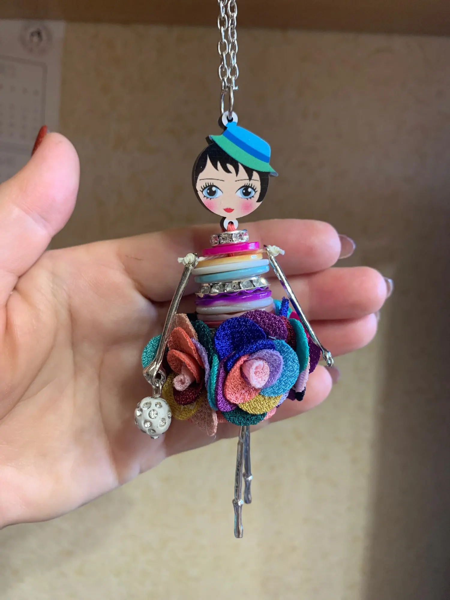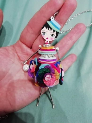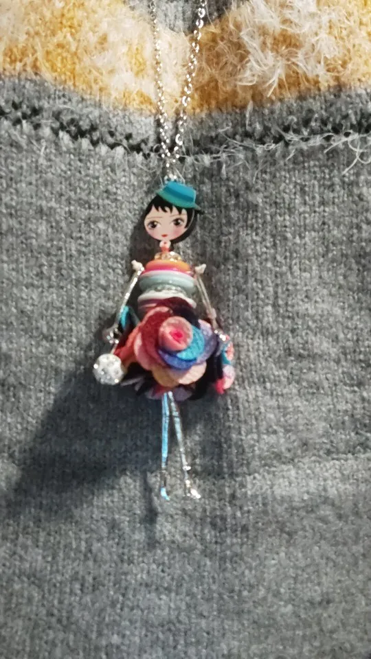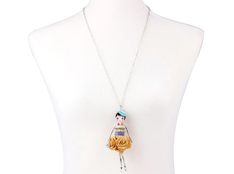 Bonsny Оболочки Кристалл Кукла Ожерелье Платье Ручной Французский Кукла Кулон 2016 Новости Сплава Женщин Девушки Цветок Ювелирные Изделия