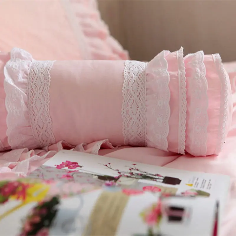 Розовая Подушка с вышивкой, свадебная декоративная подушка для постельного белья, Милая Кружевная Подушка с оборками для принцессы, подушка для поясницы, диван, подставки для рук