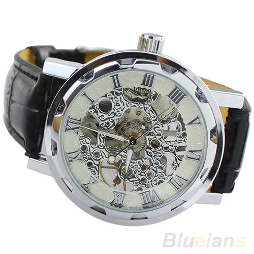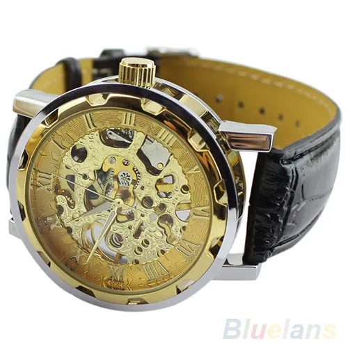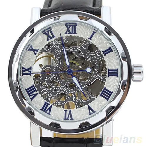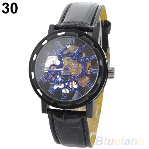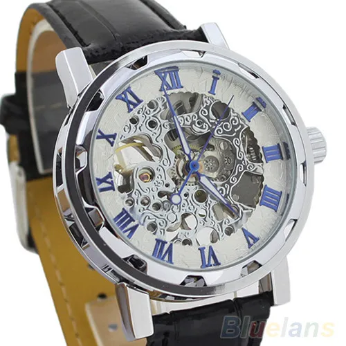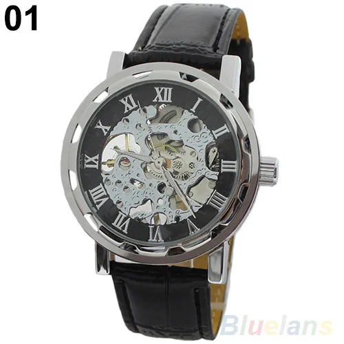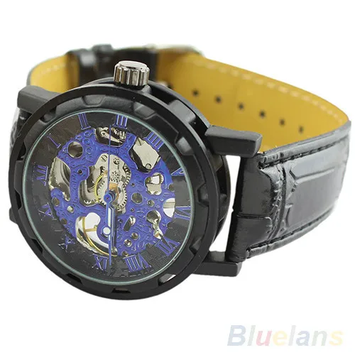 Лидер продаж классические мужские модные черные механические Спортивные армейские наручные часы-скелетоны с кожаным ремешком 02HM 3AG8